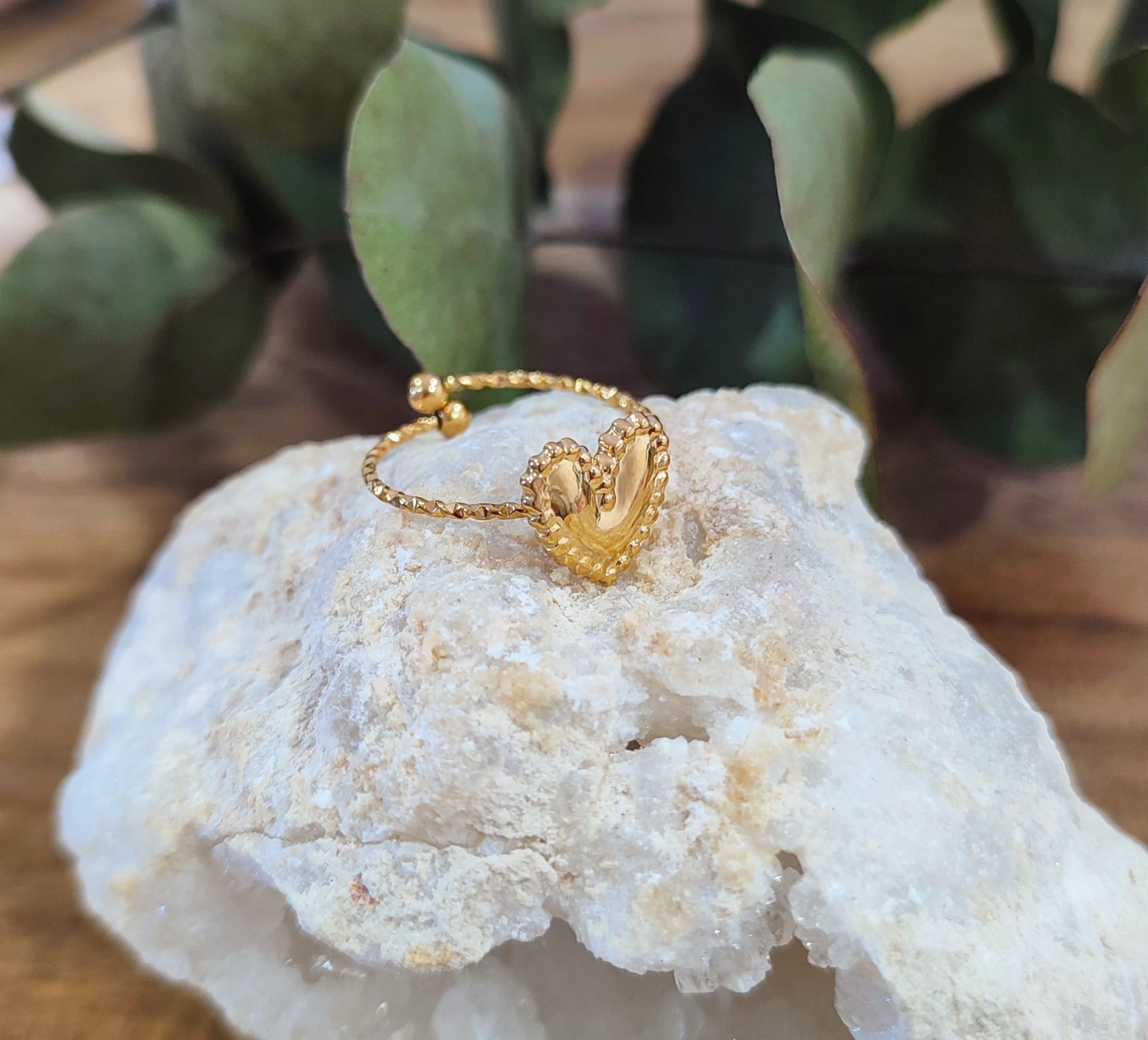 Anel Ajustável em aço inoxidável com Pedra Natural